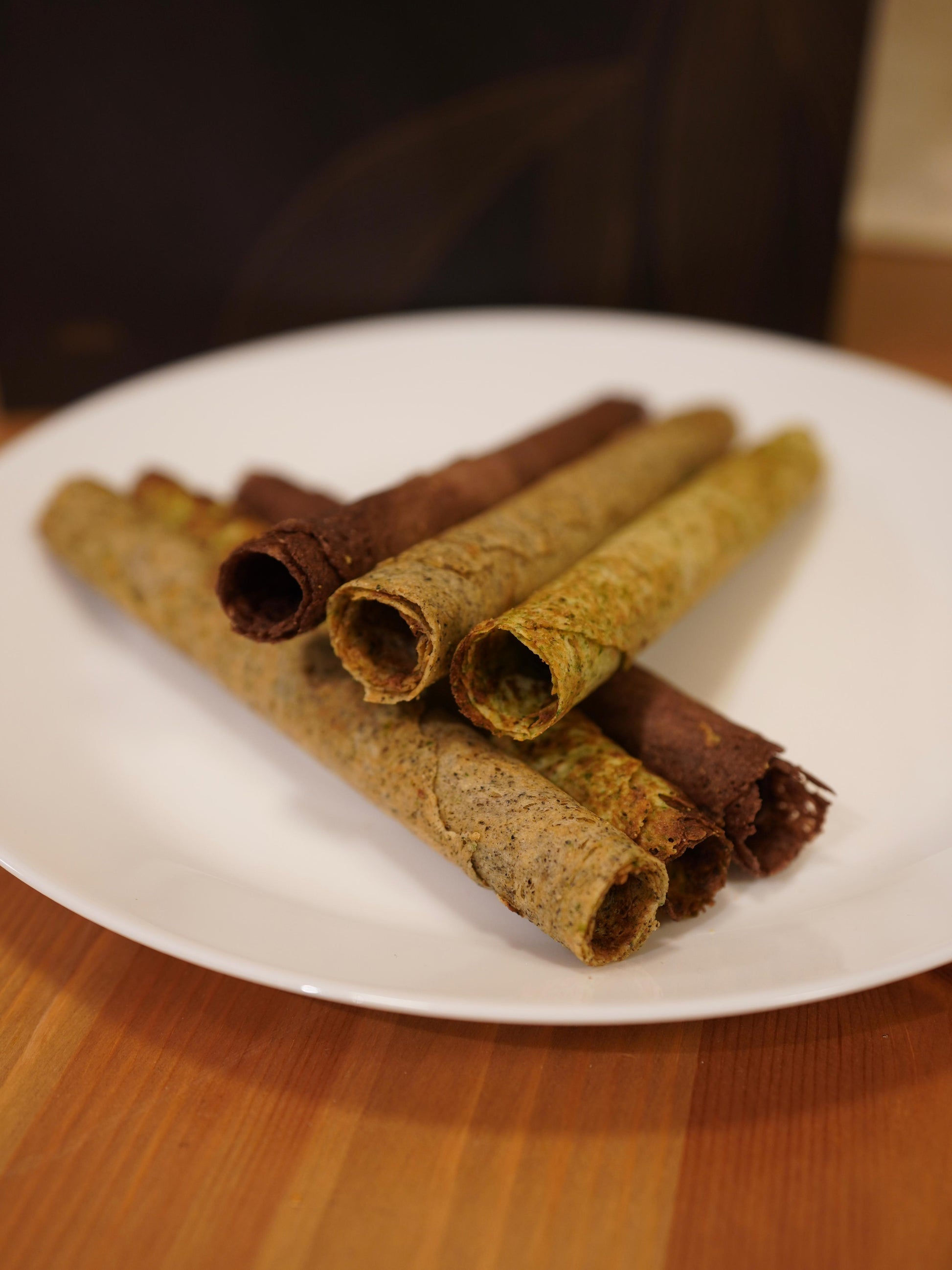- 獨立包裝:每種風味均有 3 包獨立包裝,方便分享或隨時享用。每包內含 2 條蛋卷,總共9 包 - 18 條,讓您隨心搭配。